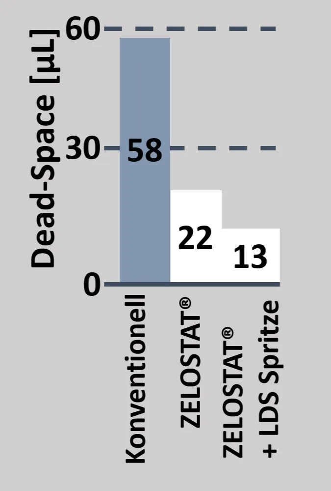 Die Low-Dead-Space Technologie basiert auf einem flexiblen Polymerring, der den Totraum zwischen Nadel und Spritze ausfüllt und so die Produktverschwendung drastisch reduziert.